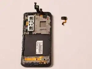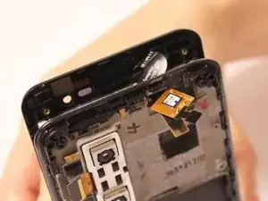 От передней части телефона идёт ленточный кабель, который проходит через паз в задней части.