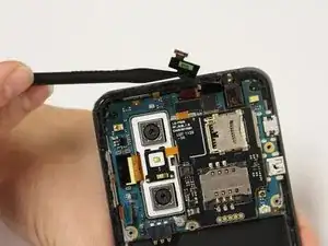 Осторожно подденьте плату, чтобы отделить её от размягчённого клея. Не забудьте также поддеть небольшой язычок, соединённый с камерой.