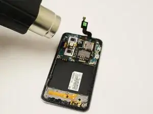 Используйте фен на высокой мощности или термофен на низкой температуре, чтобы нагреть устройство и размягчить клей, удерживающий плату SD- и SIM-карт.