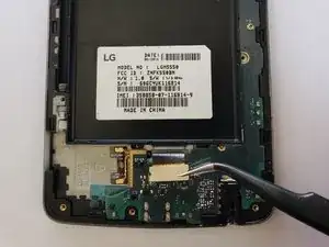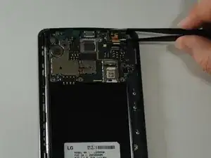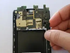 С помощью пинцета поднимите ленточный разъём и отсоедините заднюю камеру от материнской платы.