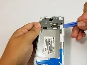 С помощью пластикового инструмента для вскрытия отделите задний корпус от рамы телефона.