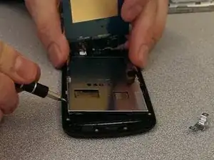 Отвинтите два коротких черных винта внизу телефона, которые удерживают разъем USB на рамке.