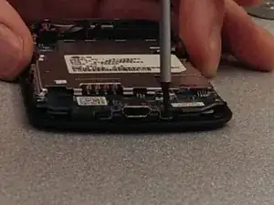 Подденьте у разъема micro SD. Оттолкните крышку слота SD от передней части телефона и отожмите заднюю рамку от остальной части телефона.