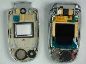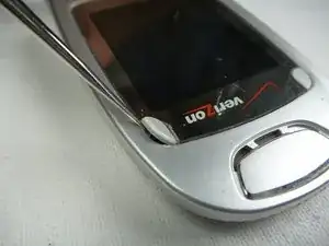 Этот раздел охватывает процесс разборки верхней части корпуса LG VX5200 для доступа к экрану телефона.