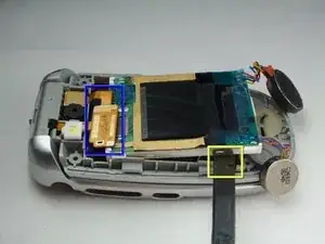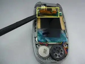 Удалите маленькую батарею рядом с динамиком с помощью пластиковой лопатки.