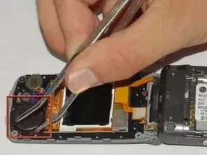 Удалите вибромотор, поднимая его из корпуса телефона с помощью пинцета.