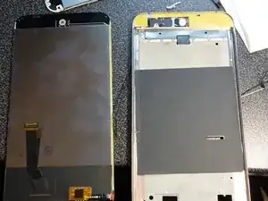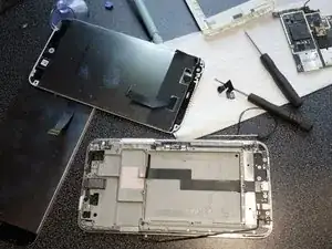 Теперь удалите старый экран. Он приклеен, попробуйте приподнять один угол, затем с помощью пластикового инструмента отклейте все.