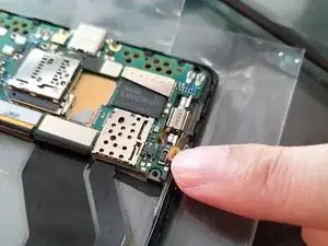 Поднимите материнскую плату, начиная с нижней части телефона, и аккуратно переверните её. Вы увидите скрытый разъём.