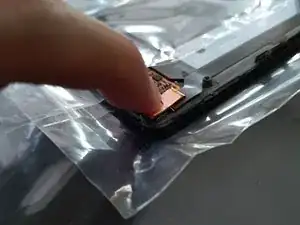 Снимите боковую панель лопаткой. Она слегка приклеена, но может быть поднята пальцами или пинцетом.
