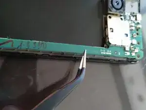 Отсоедините разъём для наушников с помощью лопатки. Затем подденьте его пинцетом.