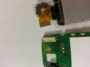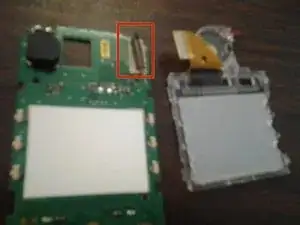 Снимите прикреплённую шлейф‑ленту с платы, поддев и открыв серую пластиковую защёлку в правом верхнем углу платы.