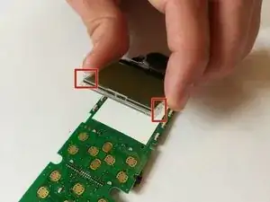 Отстегните четыре защелки, чтобы снять экран (прикреплённый к прозрачному пластику) с платы.