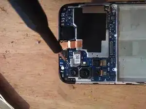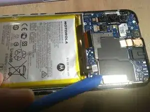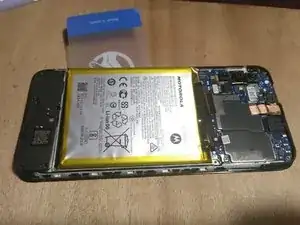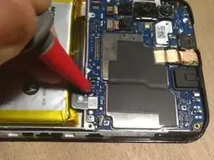 Клей здесь довольно сильный, а батарея не слишком жёсткая, поэтому операция сложная. Опасно нагревать ячейку батареи, будьте терпеливы и осторожны.