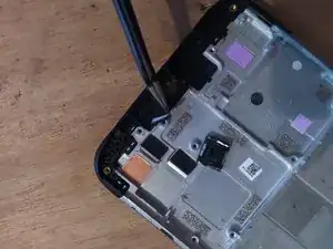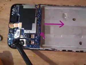 Мне не удалось правильно отклеить лезвием по краю. Моя техника проще и более грубая: я подталкивал дисплей от отверстия разъёма жёстким инструментом.