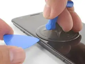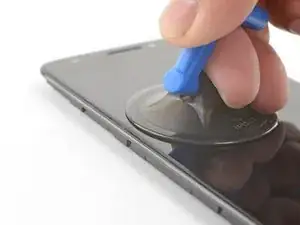 Потяните за присоску сильной, ровной силой, чтобы создать зазор между экраном и рамкой.