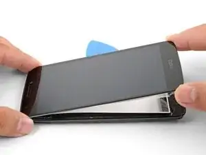 По мере продвижения лопатки вы можете почувствовать, как она упирается в край ЖК-панели под стеклом. Если направить кончик лопатки вниз, вы сможете провести её под краем ЖК-панели.