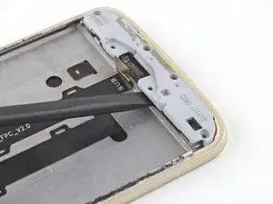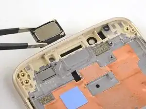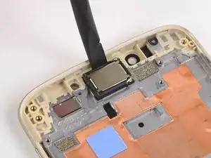 Используйте плоский конец лопатки, чтобы поддеть и освободить разговорный динамик из его гнезда.