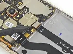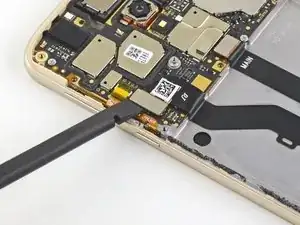 Не снимайте заднюю крышку полностью. Кабель датчика отпечатков пальцев всё ещё подключён к телефону и может легко порваться при чрезмерном натяжении.