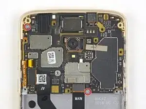 Удалите два филипс-винта длиной 2,9 мм, крепящих материнскую плату.