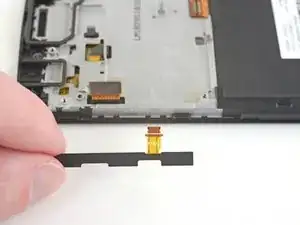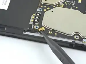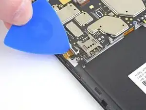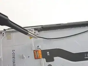 Используйте наконечник лопатки, чтобы приподнять фиксатор, который удерживает гибкий кабель в ZIF-разъёме.