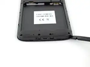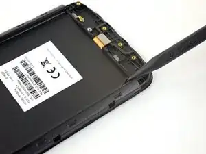 Вставьте плоский конец лопатки под материнскую плату в любом месте возле верхнего края телефона.