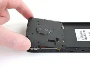 Используйте плоский конец лопатки, чтобы поддеть и ослабить модуль слухового динамика из его посадочного гнезда.