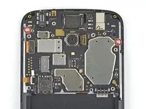 Снимите два винта T5 длиной 3 мм, которыми материнская плата крепится к рамке телефона.
