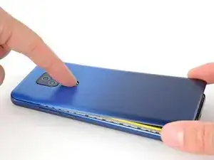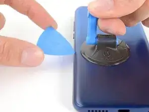 Если задняя крышка всё ещё прилипает к раме, проведите медиатором по краям телефона, чтобы разрезать оставшийся клей.