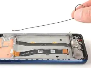 Захватите и извлеките чёрный антеннный кабель из его углубления в рамке.