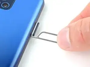 Вставьте инструмент для извлечения SIM-карты или выпрямленную скрепку в отверстие рядом с лотком для SIM-карты.