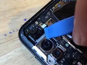 Осторожно отсоедините разъёмы внешних камер от платы с помощью лопатки, затем извлеките камеры из телефона.