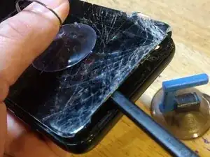 В зависимости от степени повреждения экрана вам может потребоваться удалить разбитое стекло с клеевой поверхности. Полностью удалять весь клей для замены необязательно. Процесс может потребовать использования пинцета и лопатки. Используйте защитные очки!