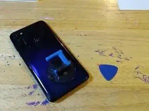 После ослабления клея крышки аккуратно прижмите датчик отпечатка пальца и приподнимите заднюю крышку вверх.