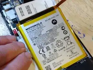 Аккумулятор удерживается большим количеством клея, и его извлечение может занять время. Работайте спокойно и постепенно.