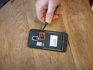 Снимите черную наклейку под отсеком для аккумулятора.