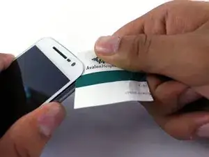 Проводите картой или другим предметом по периметру экрана, чтобы максимально разъединить склеенные части.
