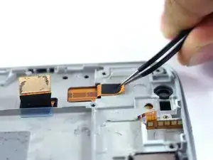 Поднимите два оранжевых кабеля, подключающих экран к телефону.