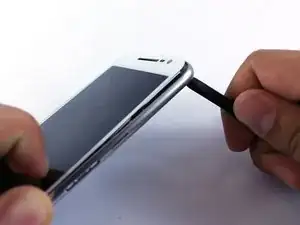 Пока ЖК-экран ещё тёплый, используйте лопатку, чтобы поджать экран через образовавшийся зазор при подъёме фронтальной камеры.