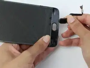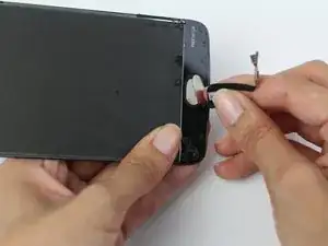 Отсоедините разъём аккумулятора, подняв чёрный разъём с помощью пластиковой открывалки. Это отключит питание телефона и предотвратит дальнейшие повреждения.