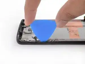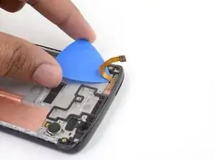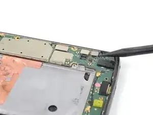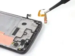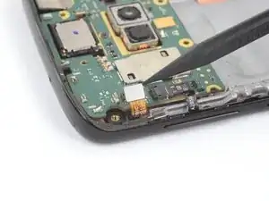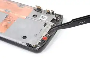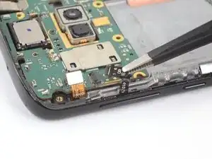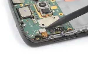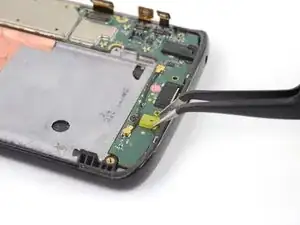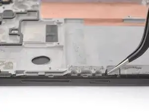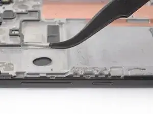 Используйте пинцет, чтобы аккуратно вытащить плату кнопок громкости и питания из её посадочного места. Если её трудно извлечь, убедитесь, что вы разрезали весь клей.
