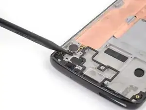 Используйте острый конец лопатки, чтобы надавить на заднюю часть кнопки громкости, за её верхним концом, чтобы верхняя часть кнопки выскользнула из корпуса.
