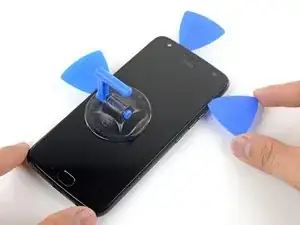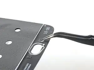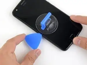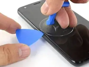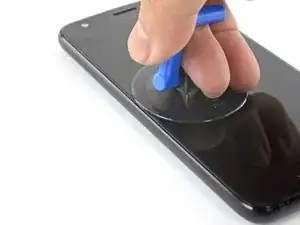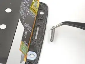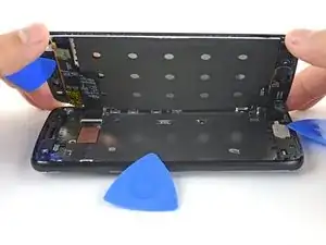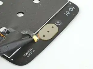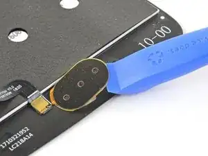 Используйте инструмент для вскрытия, чтобы поддеть и ослабить датчик отпечатков от экрана.