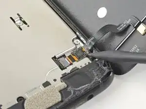 Пинцетом аккуратно выньте кабель дисплея из ZIF-разъёма.