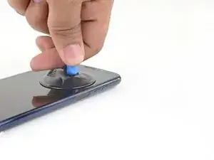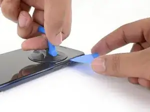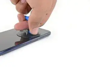 Это может потребовать значительного усилия, но вам нужно открыть очень маленький зазор присоской, чтобы вставить инструмент.