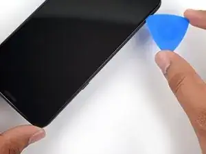 Проведите инструмент вдоль правого края телефона, чтобы рассечь клей, фиксирующий дисплей.