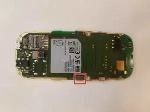 В белой рамке телефона близко к верхнему правому углу батареи есть вырез. С помощью пальца или пластикового инструмента воспользуйтесь этим вырезом, чтобы приподнять батарею и извлечь ее из устройства.