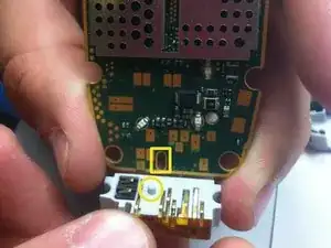 ПРИМЕЧАНИЕ: при повторной сборке разъём зарядного устройства должен располагаться внизу телефона. У разъёма есть выступающий штырёк, который входит в плату. (см. третье изображение)
