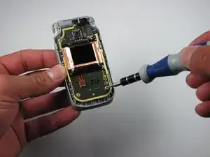 Вставьте инструмент для вскрытия iPod между основанием телефона и аккумулятором.
