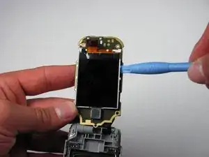 Осторожно отведите верхнюю крышку от телефона с помощью инструмента для вскрытия iPod.