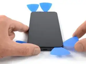 Вставьте четвёртый медиатор под верхний левый угол телефона.